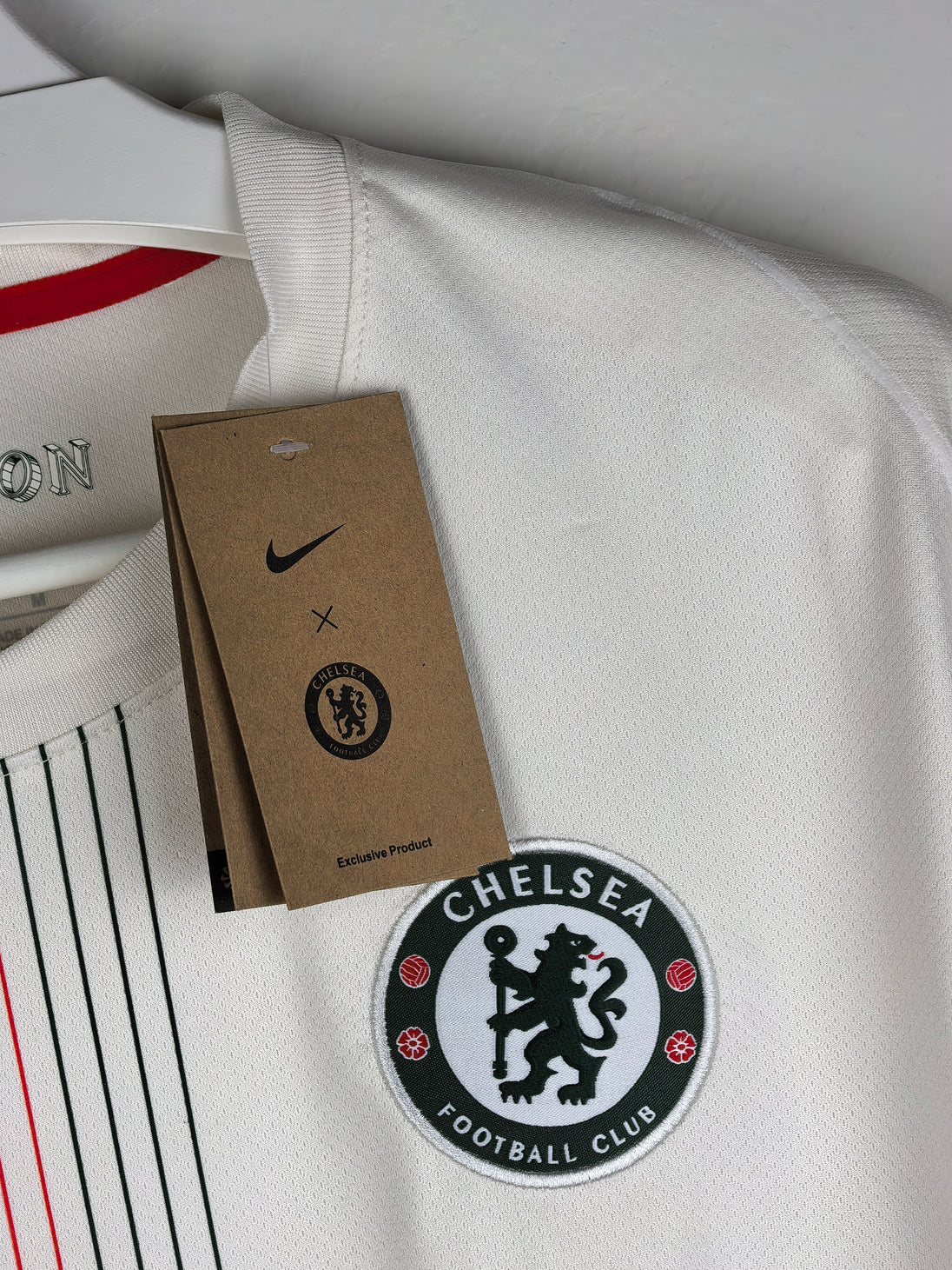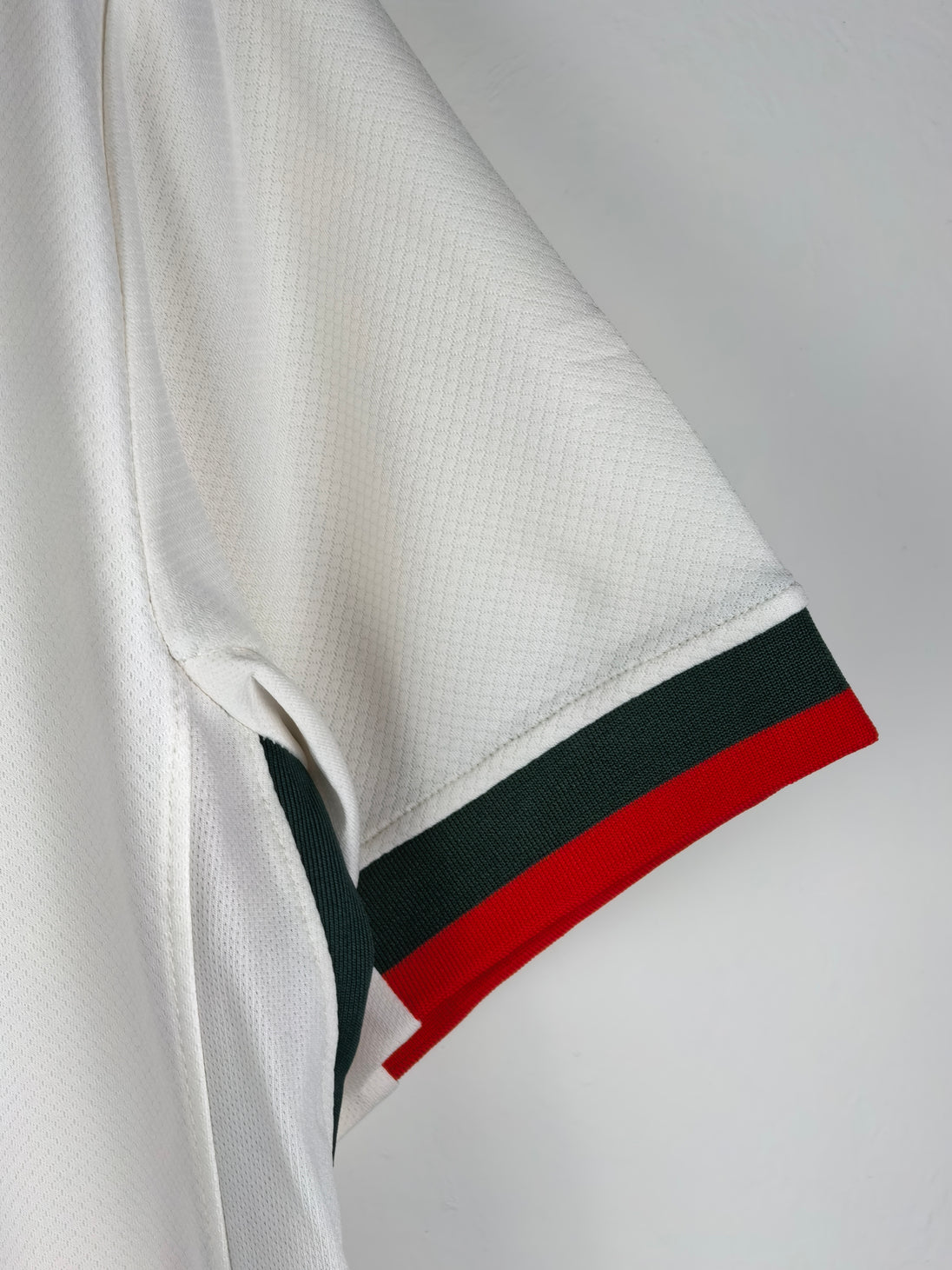 Clean, timeless, and iconic — this off-white stadium edition away shirt revives Chelsea’s famed 1974 “Magnificent Magyars” tribute with subtle green and red pinstripe detailing, nodding to one of the club’s most revered cult kits. The collar’s warm phantom base is delicately trimmed in Speed Red and Galactic Jade, giving it a refined vintage feel balanced by modern performance design.