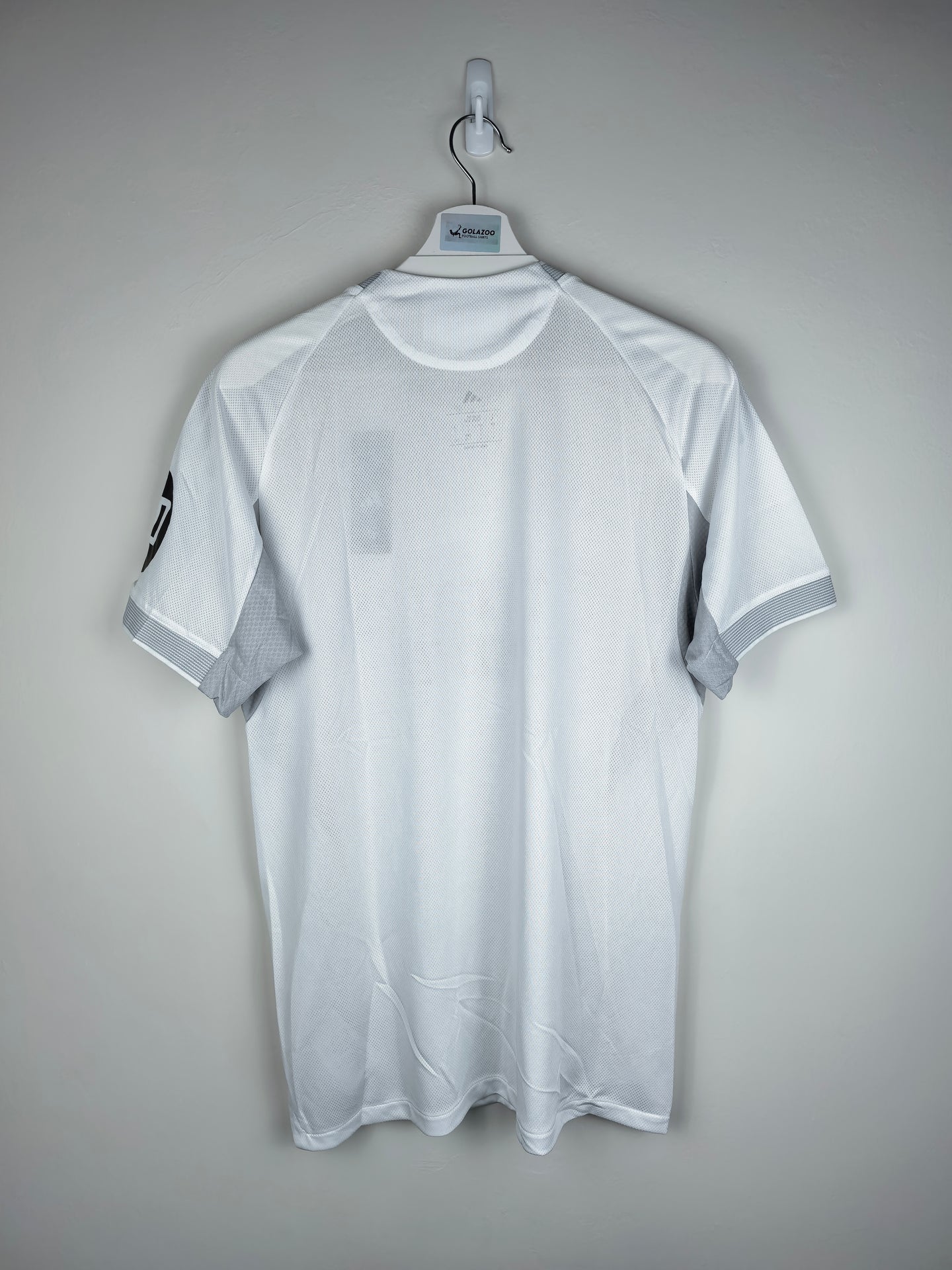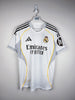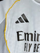 Clean white with sleek yellow piping and subtle grey tones—this isn’t just any replica. It’s the slim-fit player version, built for performance with recycled fabric, moisture-wicking AEROREADY, and heat-pressed crests for that elite matchday feel. Inspired by the refreshed Bernabéu, the tonal textures echo the stadium's facade. A compact, performance-driven homage to Real’s timeless tradition.